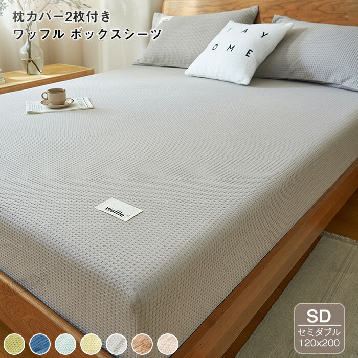 ワッフル織り 綿100% ボックスシーツ ベッドシーツ 枕カバー付き ワッフル セミダブル 120X200cm ベット用 マットレスカバー 通気性 一年中快適に使え ボックスカバー ベッドカバ 吸水性