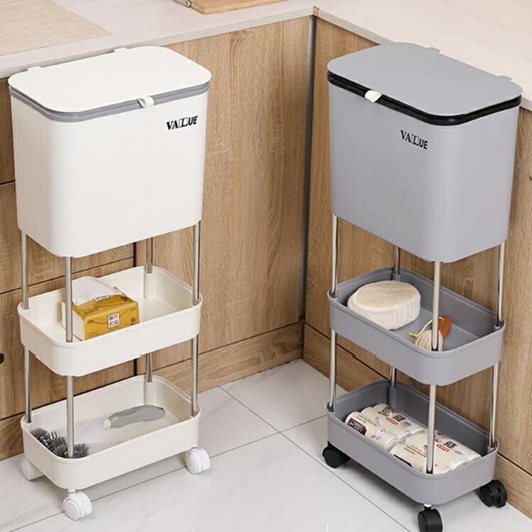 腰を曲げず 省スペース 多段 ゴミ箱 キッチンワゴン 多機能 スリム 分別ごみ箱 隙間収納 キャスター付き フタ付き 収納整理 ごみ箱 乾湿分離 ストッカー フットペダル 3段 ダストボックス