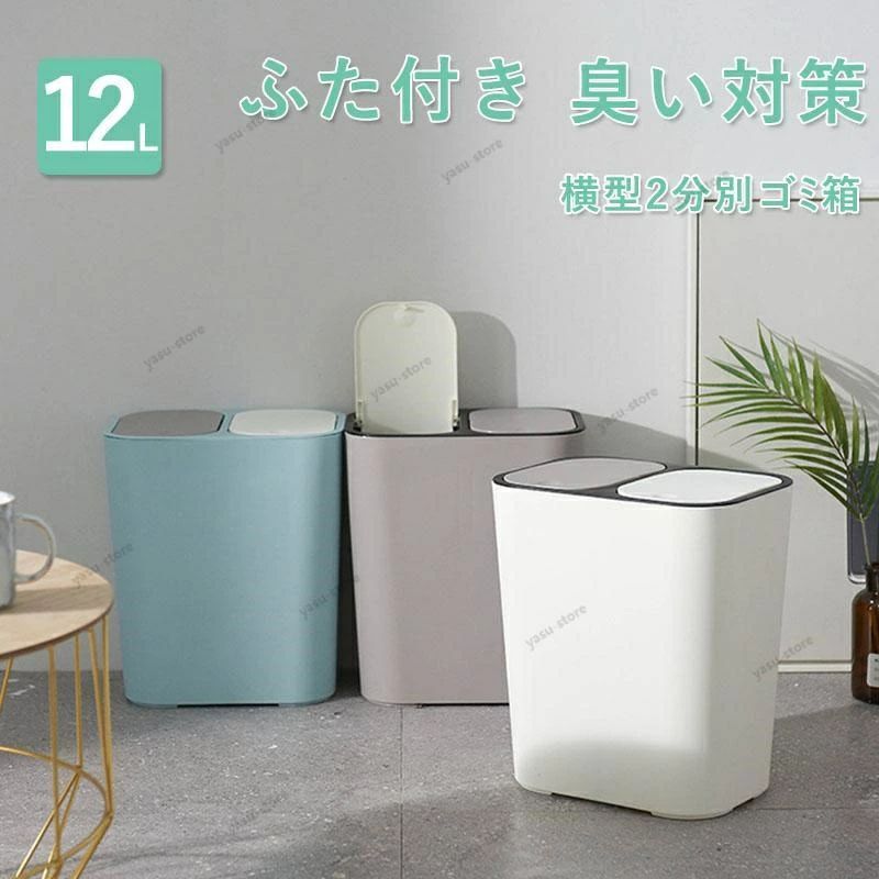 ゴミ箱 ふた付き 2分別ワゴン 蓋つき 臭い対策 ダストボックス プッシュオープン シンプル 台所 生ゴミ 12L 資源ごみ 分別 ミニ 小型 新生活 仕分け