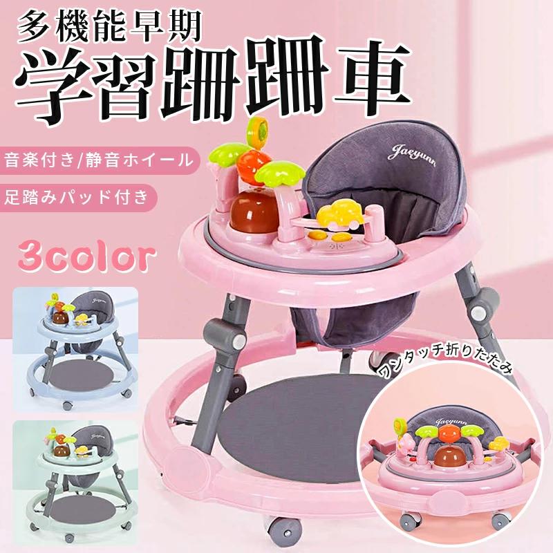 赤ちゃん ベビー 室内 室外 高さ調整 ベビーウォーカー スタンダード 丸型 歩く練習 折り畳み式 テーブル付き 円形 車 静音