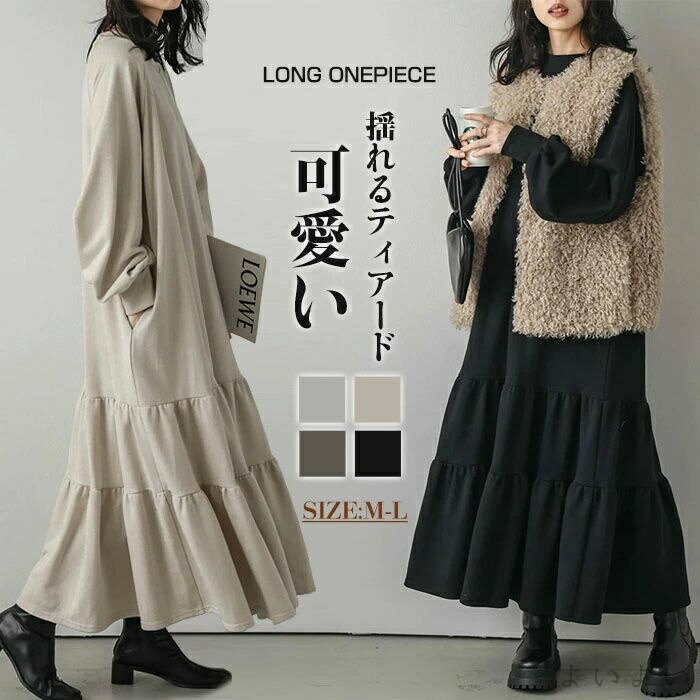 ワンピース ティアード 秋 ティアードワンピース ぽわん袖 パーカーワンピ 秋冬 レディース 長袖 ロングワンピース きれいめ