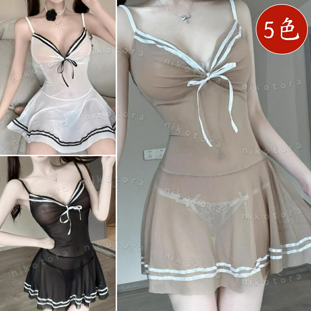 【3色】透け感 ワンピース キャミワンピース ノースリーブ ミニ丈 ネック タイト ライン フレアワンピース スリム セクシー