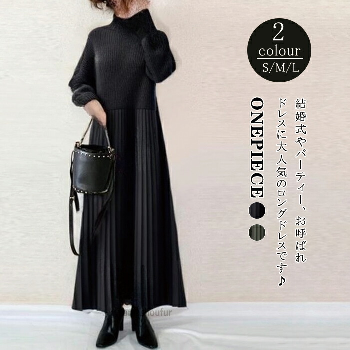 黒のみ 在庫一掃 ワンピース 秋冬 きれいめ 母の日 プレゼント レディース 40代 春 ロング 黒ワンピ ブラック おしゃれ ニットワンピース ミモレ丈