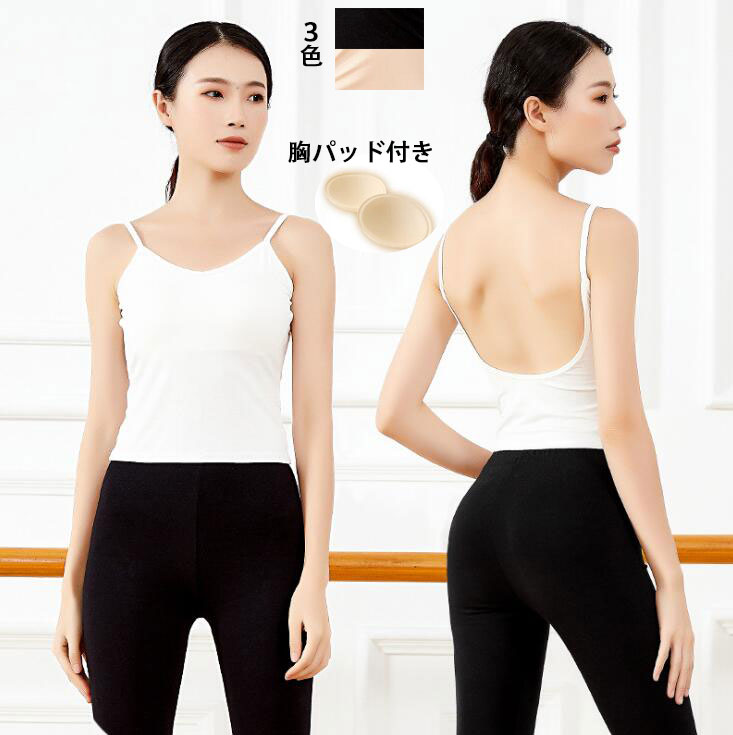 キャミソール バレエダンスウェア トップス レディース フィットネスウェア 胸パッドポケット付き バストライナー付き ストレッチ 細見え 練習着 ダンス稽古 新体操 ヨガ 3色 レッスン着