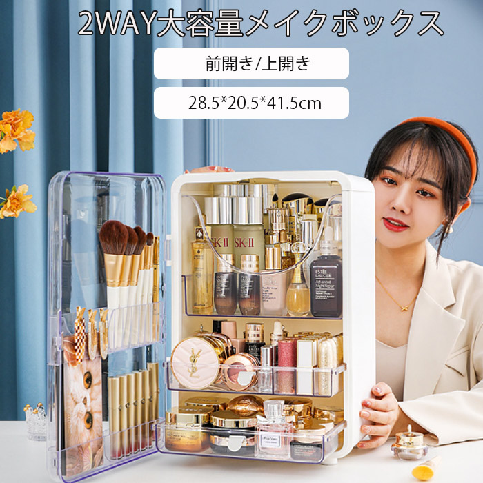 メイクボックス 組立不要 大容量 化粧品ケース ボックス 寝室 浴室 洗面所 家庭用コスメボックス スキンケア用品 防水 防塵 蓋付き