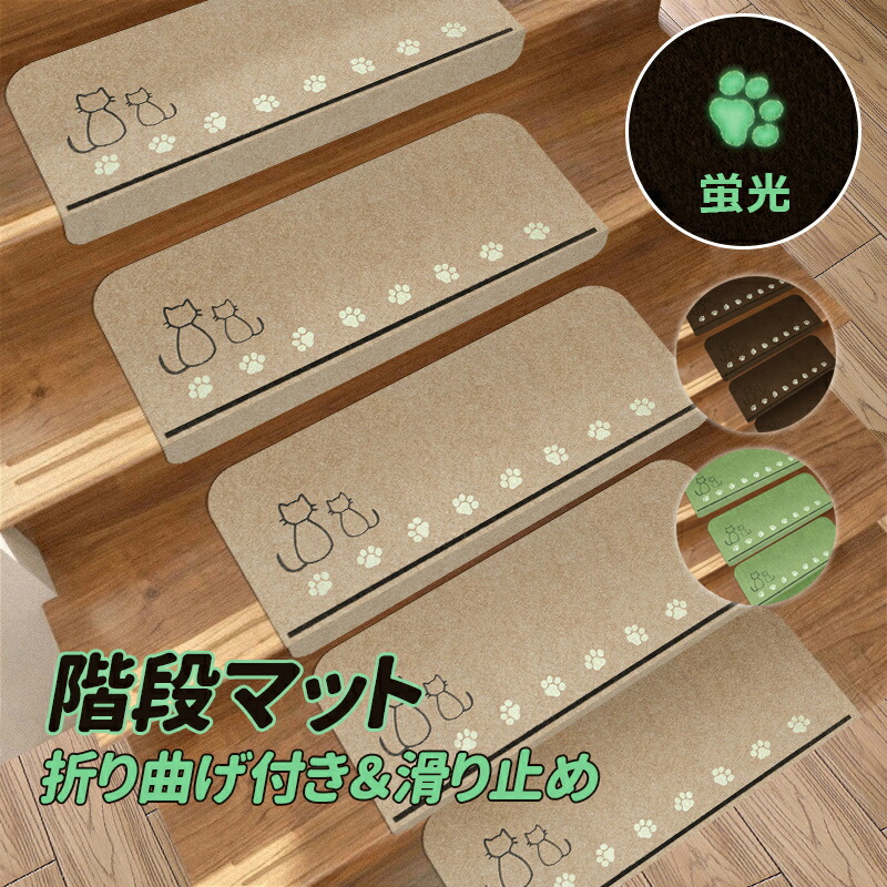 階段マット 階段滑り止め 階段滑り止めマット 蓄光デザイン 吸着タイプ 階段カーペットマット 防音対策 折り曲げ付 階段クッション 洗濯可能 足冷え対策 15枚入り 汚れ防止 キズ防止 簡単 転倒防止