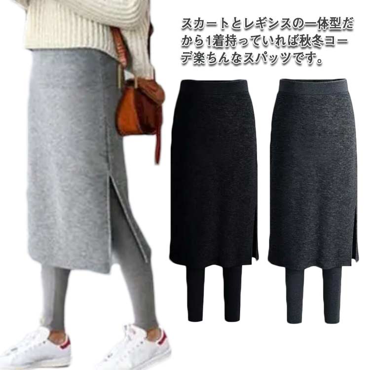 スカートレギンス 裏起毛 レギンス スカート付きレギンス レディース スカート 膝下 ロング 秋冬 マタニティ タイトスカート タイツ 裏ファー 防寒 起毛 あったか レギパン レギン サイドスリット