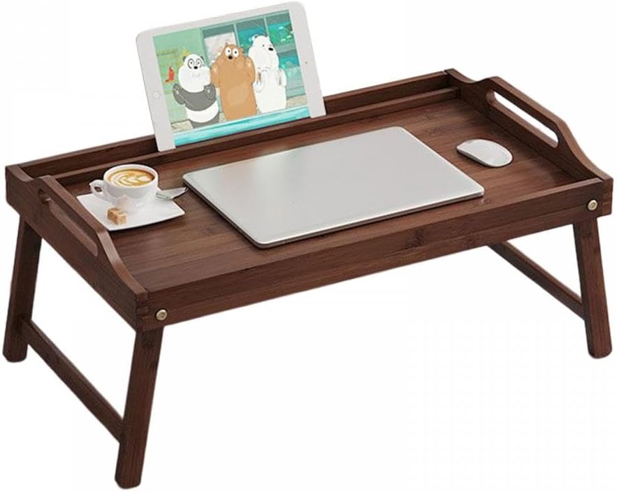 折りたたみ テーブル ベッドトレイ ちゃぶ台 折りたたみデスク 竹製 折りたたみテーブル ベッドテーブル 朝食トレイ 朝食トレイテーブル (40x30x24cm ブ ローテーブル