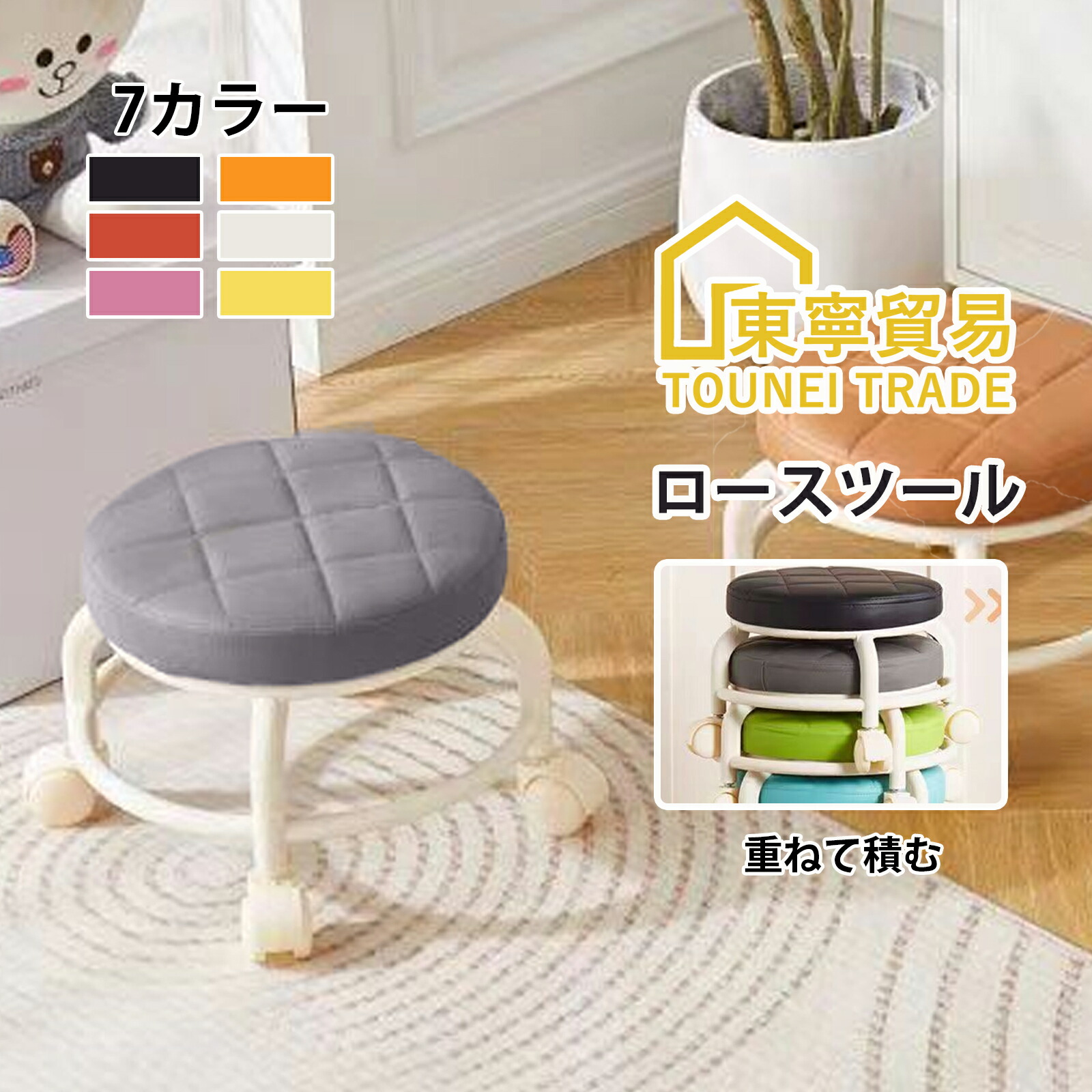 ロースツール キャスター付き 椅子 ミニ スツール ラウンドスツール 丸椅子 厚手クッション PUレザー 直径33cm 低め イス 低い椅子 フットケアスツール サロン 美容室 フットスツール
