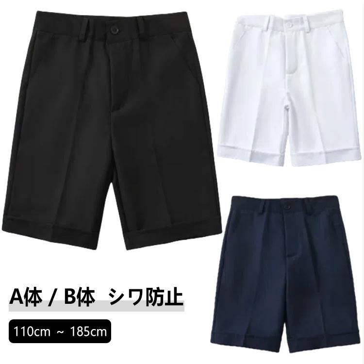 スクール ゆったり 半ズボン 丈長 小学生 男子 制服 ハーフパンツ ウエスト調節可能 紺 黒 ネイビー ブラック B体 子供 110 120 130 140 150 170 185 洗える 160