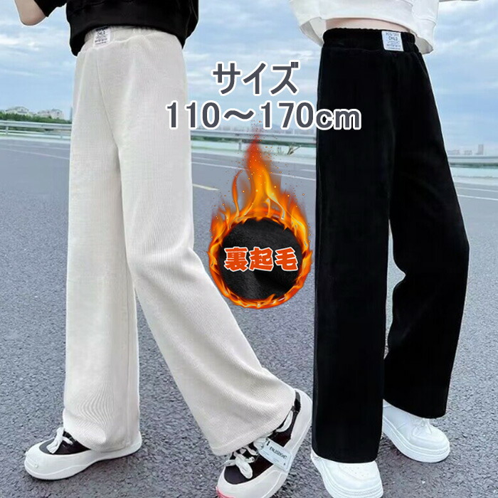 ワイドパンツ 女の子 裏起毛 キッズ パンツ 高品質 冬 春秋 ガウチョパンツ ゆったり 長ズボン ウエストゴム カジュアル シンプル 通学 ブラック お洒落 130 140 150 120