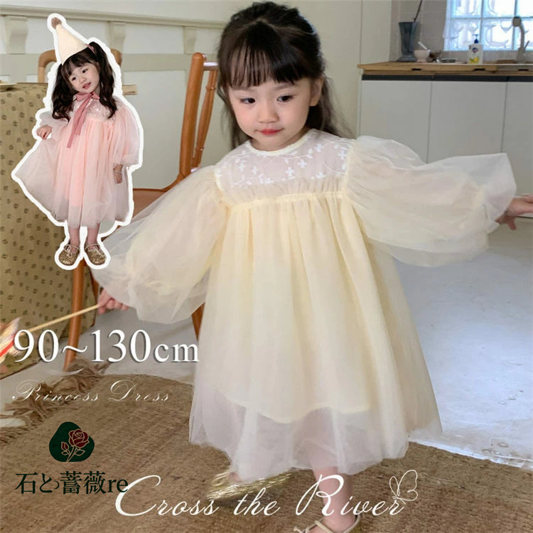 【送料無料】チュールワンピース パフスリーブ 子供ドレス 子供