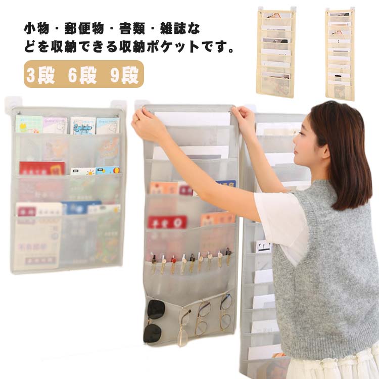 ウォールポケット 壁掛け 収納ポケット 3段 6段 9段 吊り下げ収納 壁収納 書類収納 雑誌 新聞 ドア掛け リビング 書斎 玄関 オフィス 大容量 省スペース 自宅用 小物入れ