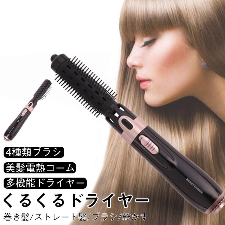 くるくるドライヤー ブラック マイナスイオン カールドライヤー カーリングドライヤー ロールブラシ 多機能 ドライヤー 細目 細め カール 家電 軽量 コンパクト 4 旅行 女性 男性