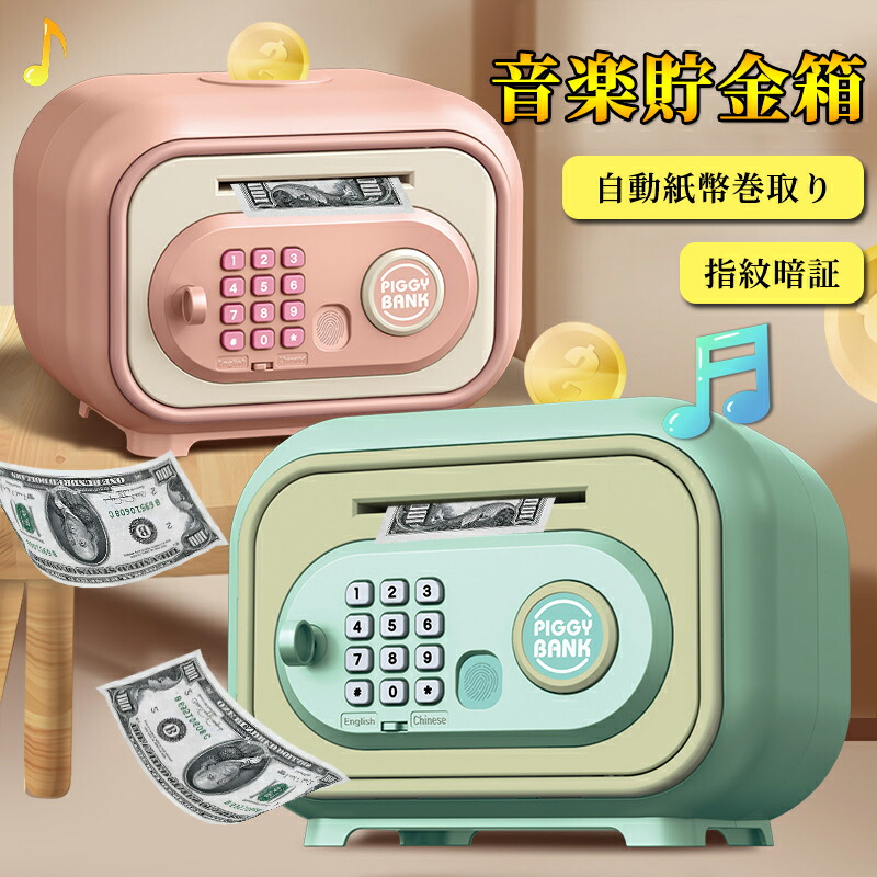 貯金箱 子供用貯金箱 かわいい 金庫型 電池式 紙幣 自動車ロールイン 指紋認証 暗証番号 開錠 大容量 コイン お小遣い 金銭管理 ATM 音楽付き パスワード設定 お札 電子バンク おもしろ 硬貨
