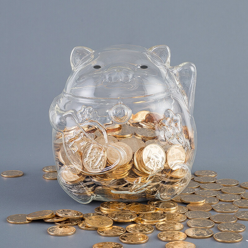 招き猫 貯金箱 500円玉 置物 かわいい おしゃれ 透明 動物 ガラス プレゼント 面白い ユニーク お年玉 貯金 入れるだけ 出せない 貯金グッズ インテリア 金運アップ 開運グ 招財進宝