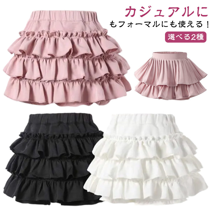 ティアードスカート キッズ 子供服 女の子 パンツインスカート フリル スカート インナーパンツ付き かわいい カジュアル ジュニア ミニ 発表会 ピアノ コンクール 通学 通園 ダンス