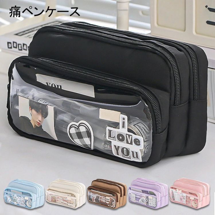 痛ペンケース 推し 筆箱 ペンケース ふで箱 大容量 透明窓 ガー