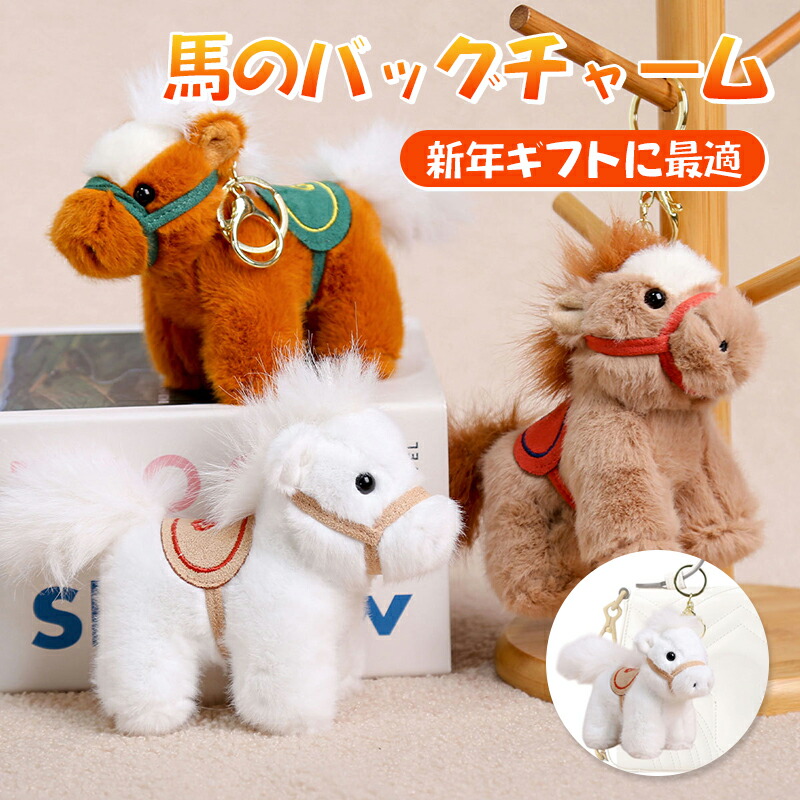 馬 車 2026年 午年 動物 バッグチャーム 金運 干支 キーホルダー 開運 ぬいぐるみ ふわふわ うま 金運アップ 贈り物 飾り 鍵 縁起物 マスコット ストラップ プレゼント かぎ