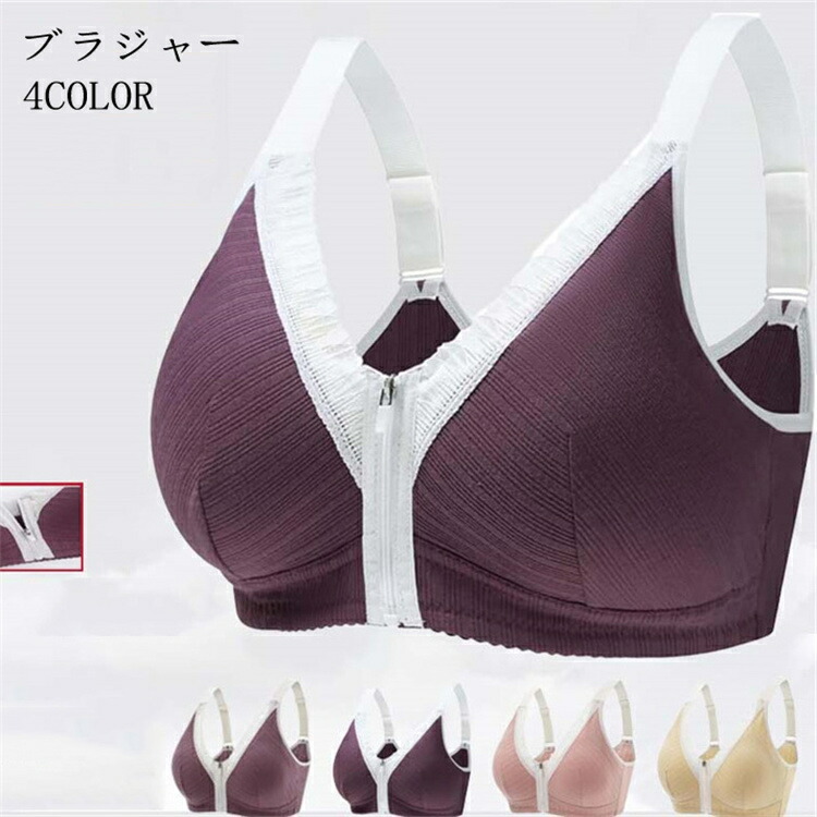 ノンワイヤー ブラジャー 大きいサイズ フロントファスナー 美胸美背