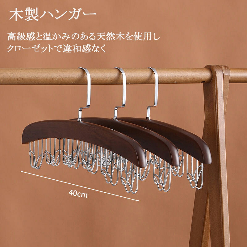 木製ハンガー 多機能ハンガー ネクタイハンガー ハンガー ナチュラル ウッド 木製 12本 クローゼット省スペース 収納 高級 たっぷり クローゼット 12本掛け ベルト スカー 整理