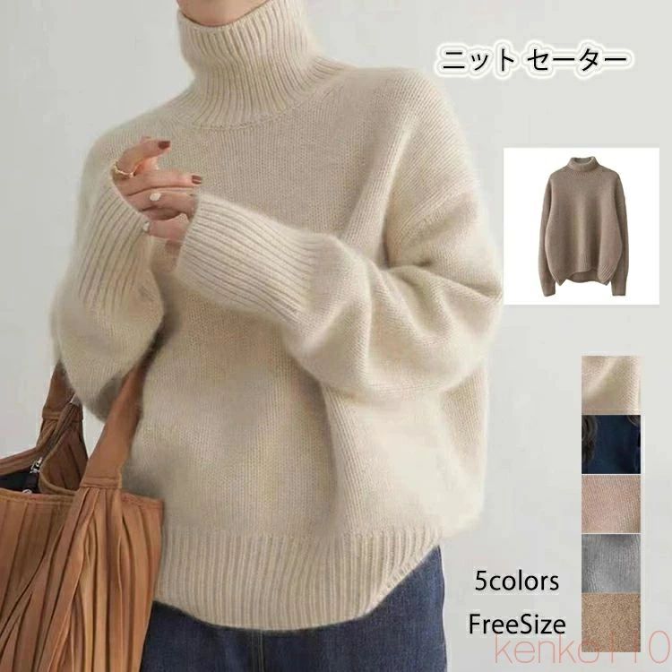 プルオーバ コージーニット カットソー ドロップショルダー 春 冬 秋 長袖 レディース タートルネック セーター タートルニット