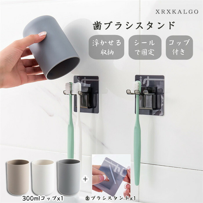 歯ブラシスタンド 1個 2個組 コップ付き 浮かせる 歯ブラシホルダー シールで固定 歯ブラシ立て 防塵 おしゃれ カップル 切り替え 清潔