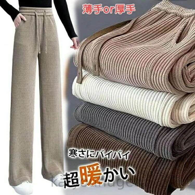 ゆったり ブラック グ ウエストゴム 長ズボン ワイドパンツ 大きいサイズ 快適 通気 脚長 暖かい 防寒 厚手 コーデュロイパンツ 肉厚 美脚 冬 秋 裏起毛 レディース ストレートパンツ 春