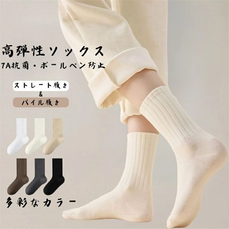 通気性 ミドルソックス ロングソックス 抗菌防臭 無地 9色展開 クルーソックス 高弾性 秋冬用 女性用 靴下 レディース 婦人靴下
