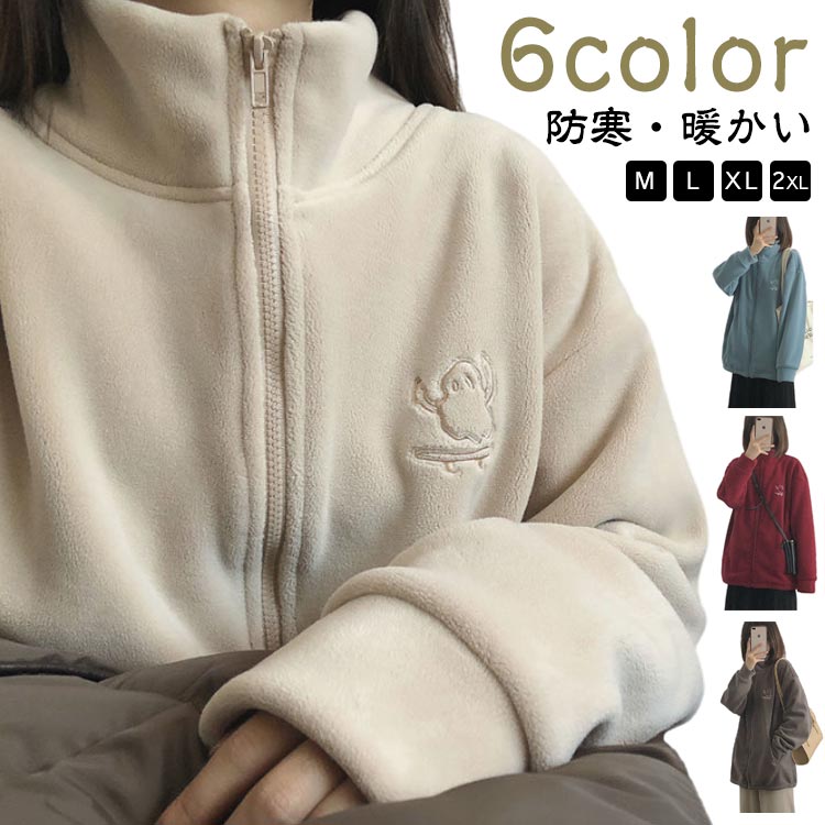 ボア ジャケット フリース アウター レディース ブルゾン 裏起毛 大きいサイズ 秋 冬 防風 防寒 ジャンパー 羽織り 上着 長袖 大人カジュアル パーカー もこもこ トレーナー 黒 可愛い