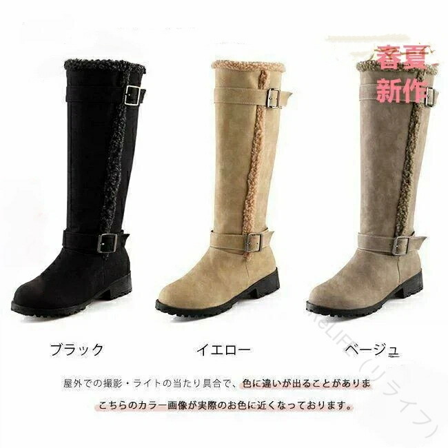 ムートンンブーツ ロング丈 防寒 ボア付き 大きいサイズ 暖かい 無地 厚底 スエード調 保温 冬新作 おしゃれ レディース 歩きやすい ベルト飾り 裏毛 防風 コーディネート 冬靴 ロン 保温性抜群