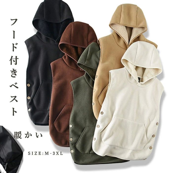 ベスト ボアベスト フード付きベスト レディース 秋冬 フード付き 裏ボア パーカー ノースリーブ 秋 冬 プルオ トップス