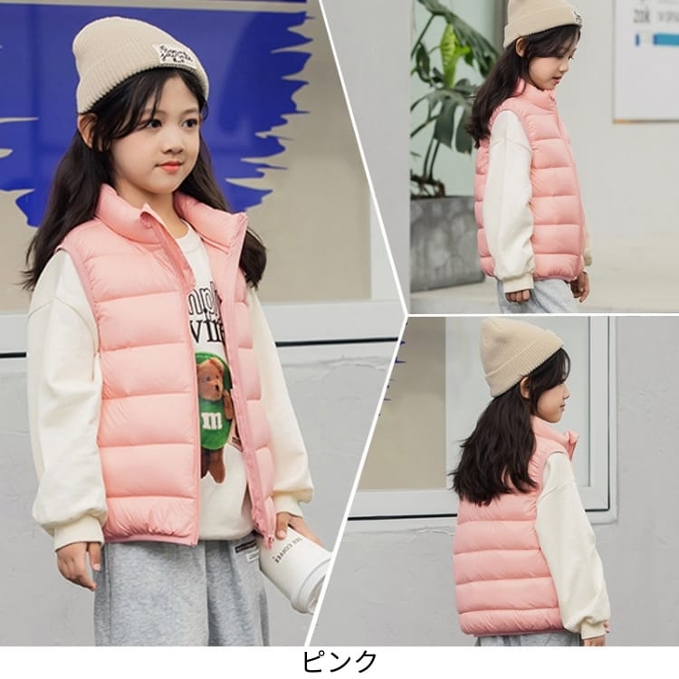 ダウンベスト キッズ 女の子 パープル キッズ ベビー マタニティ 続々登場 100cm 110cm 120cm 130cm 140cm 150cm 160cm 170cm グレー ネイビー ブラック グリーン ピンク パープル ブルー イエロー レッド