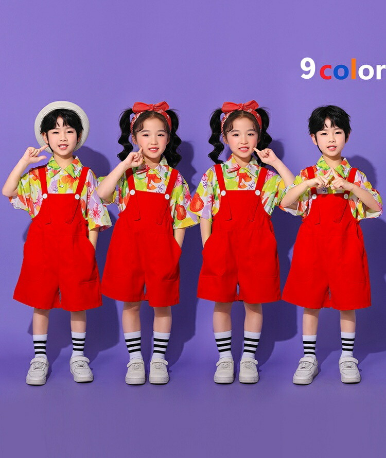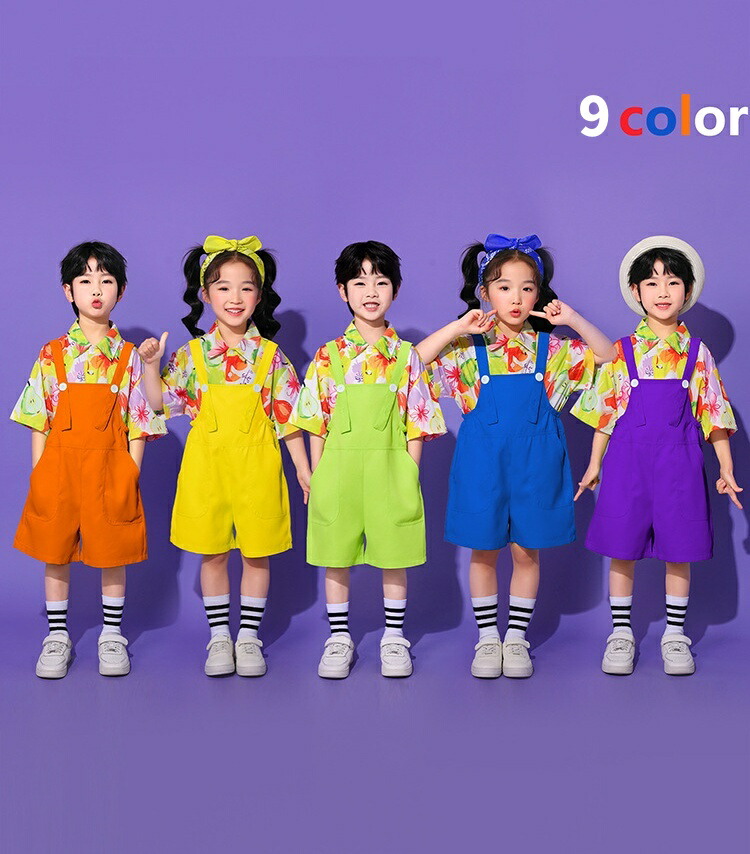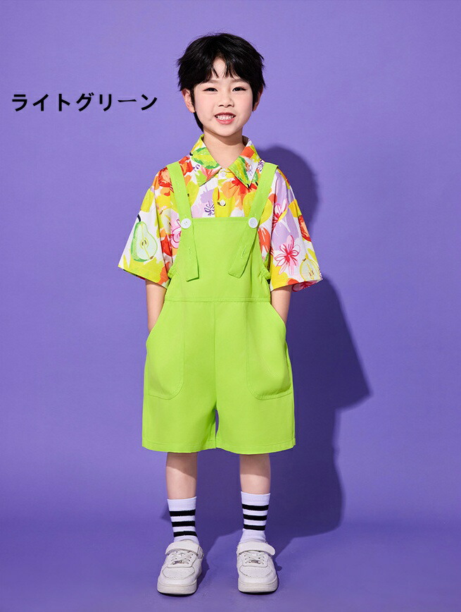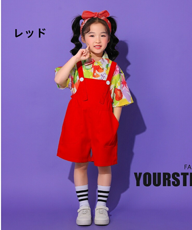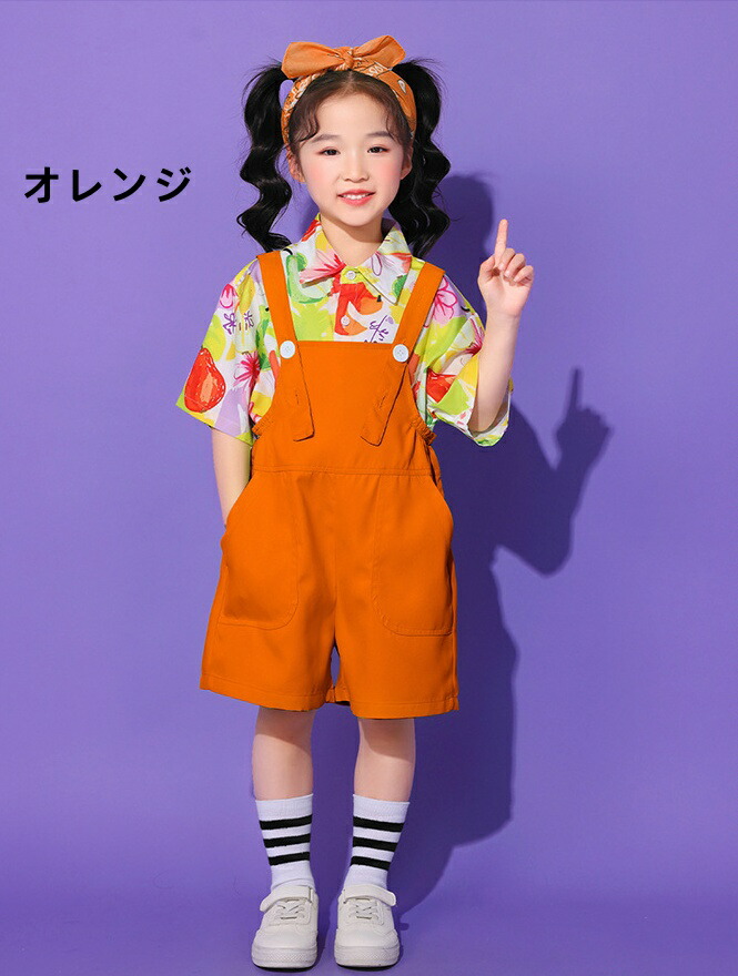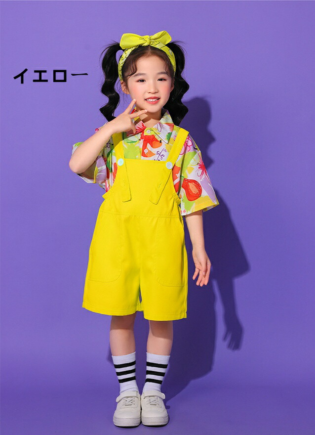 子ども ダンス服 サロペット キッズ服 キッズ ボトムス パンツ 新作 イエローサロペット レッドサロペット オレンジサロペット グリーンサロペット ブルーサロペット パープルサロペット ローズサロペット ライトグリーンサロペット なし シャツ 靴下 シャツ+靴下