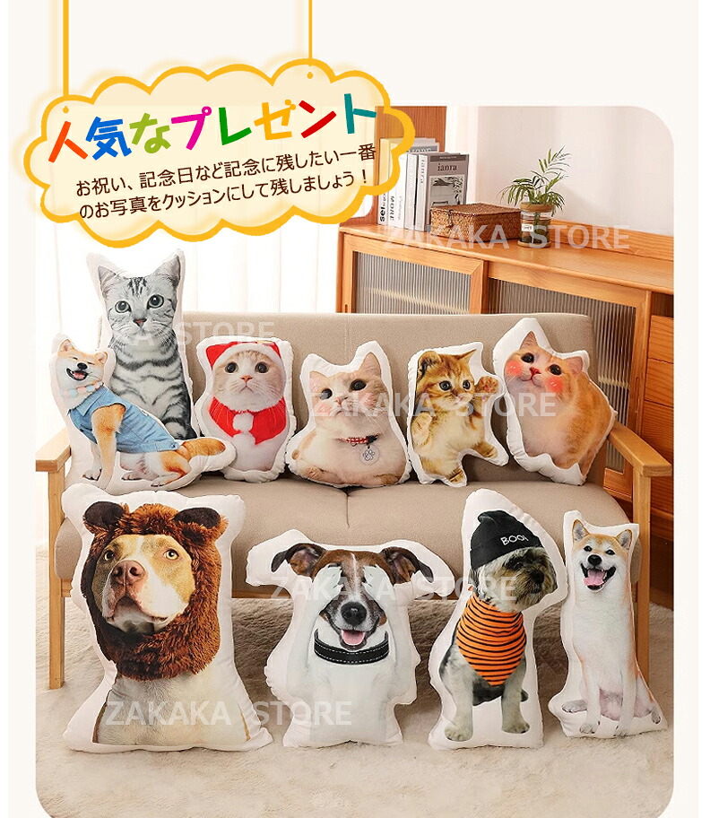 オーダーメイドクッション 写真入り ペ 最大辺20cm 最大辺30cm 最大辺35cm 最大辺40cm 最大辺45cm 最大辺50cm 最大辺55cm 最大辺60cm 最大辺70cm 最大辺80cm