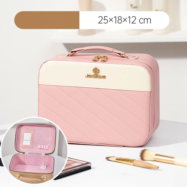 持ち運び 大容量 コスメポーチ 鏡付き ピンク(L) グリーン(L) レッド(L) ブラック(L) ベージュ(L) ピンク(M) グリーン(M) レッド(M) ブラック(M) ベージュ(M)