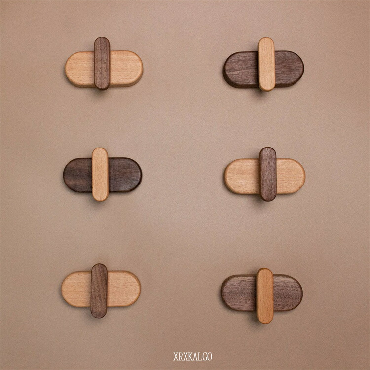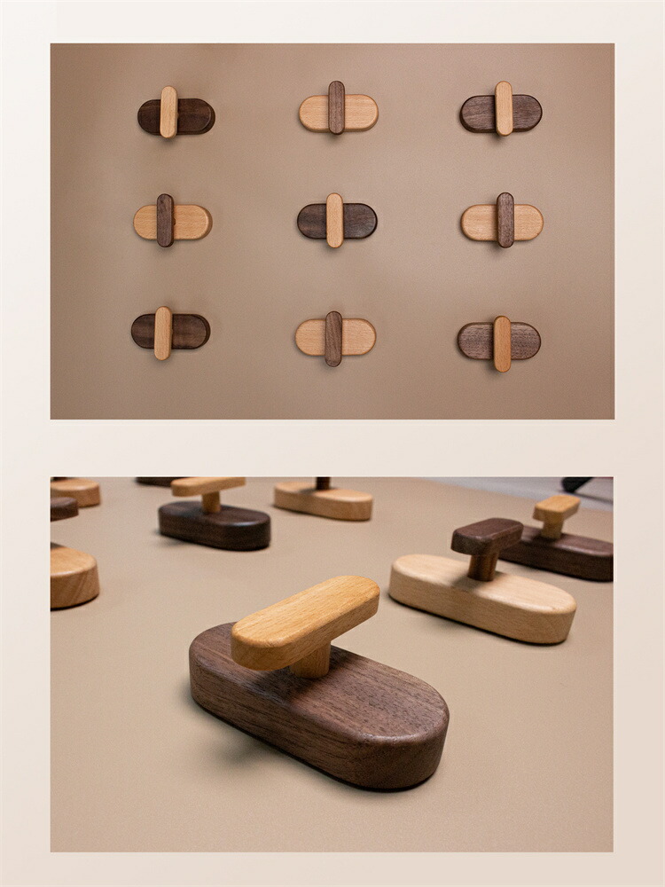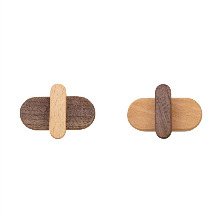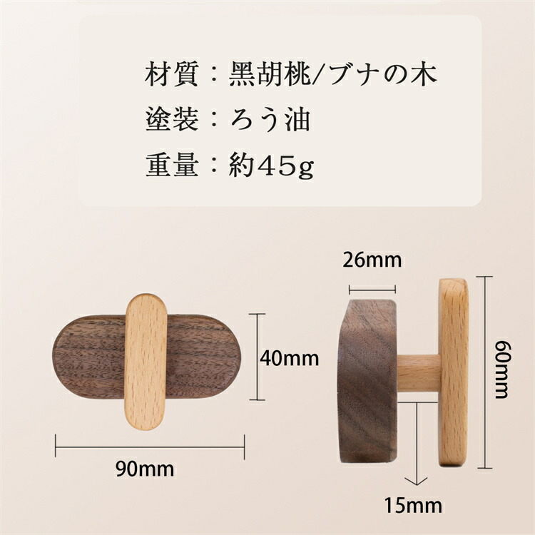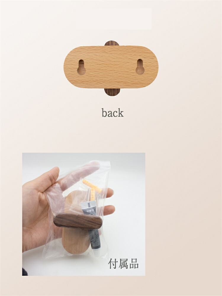 木製フック 2個 4個入り 粘着剤 ネ A黒胡桃の木 Bブナの木 2 4