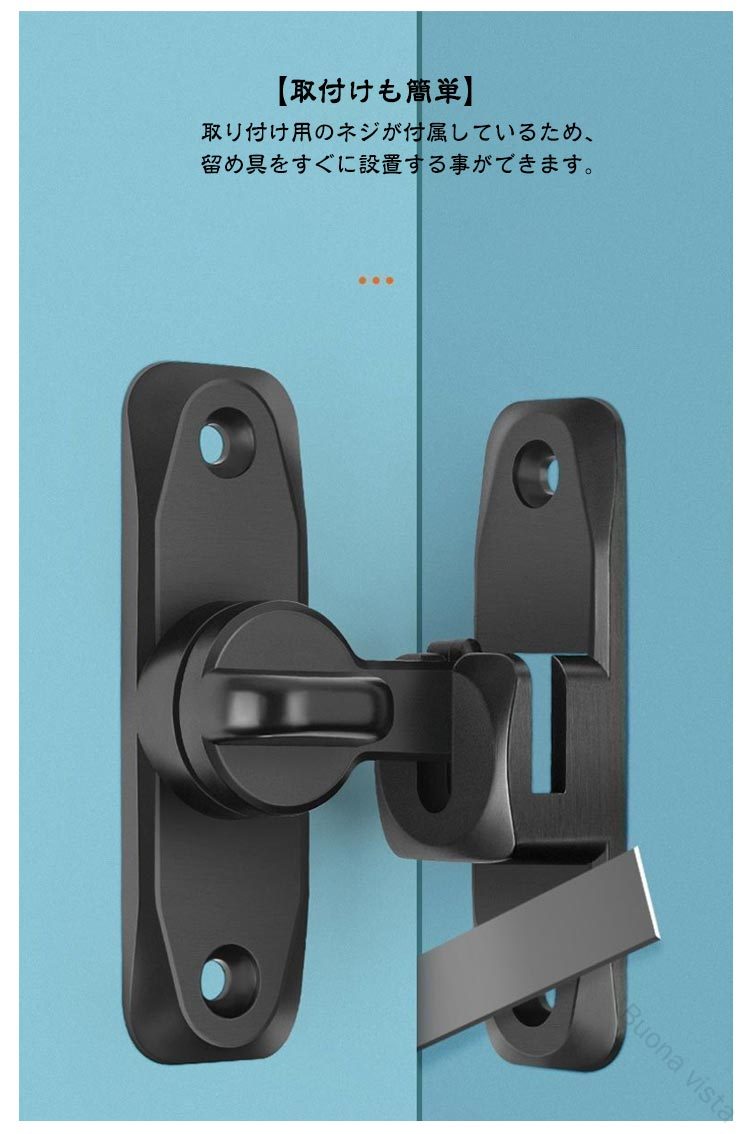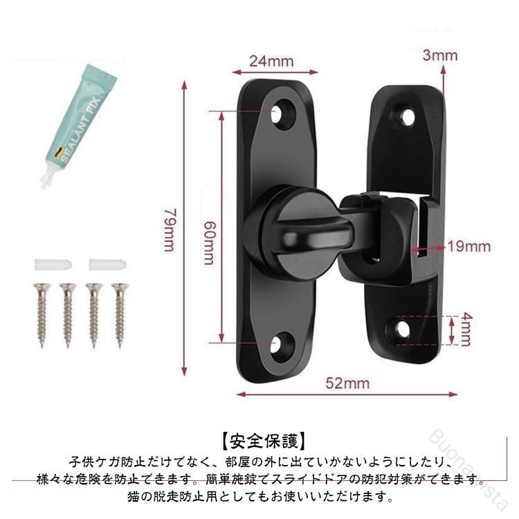 引き戸 90度 180度 窓ロック 穴あけ不要 後付け 亜鉛合金製 引き戸用鍵 ドア留め金ロック 回転式 フリップラッチロック とびらロック スライドロック 部屋 ドアロック 防犯対策に最適 鍵付き