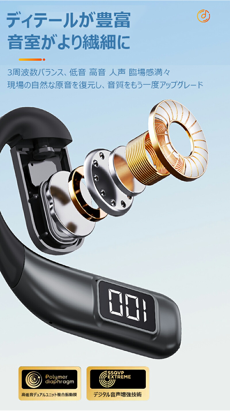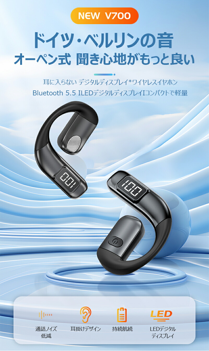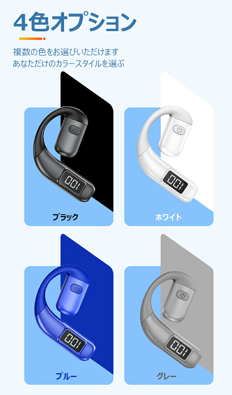 Bluetooth5.5ワイヤレスイヤ ブラック グレー ブルー ホワイト