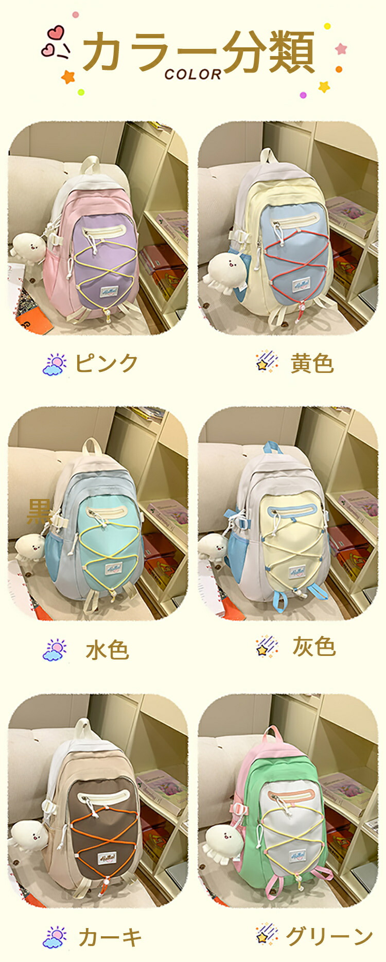 リュックサック かわいい 大容量 カジ キッズ バッグ ランドセル バックパック リュック 早い者勝ち ピンク 黄色 水色 灰色 カーキ グリーン
