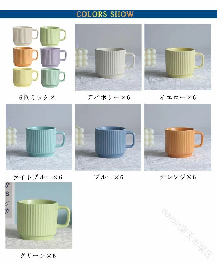 6個セット マグカップ コーヒーカップ コーヒー お茶用品 マグカップ ティーカップ マグカップ 早い者勝ち 6色ミックス アイボリー×6 イエロー×6 ライトブルー×6 ブルー×6 オレンジ×6 グリーン×6