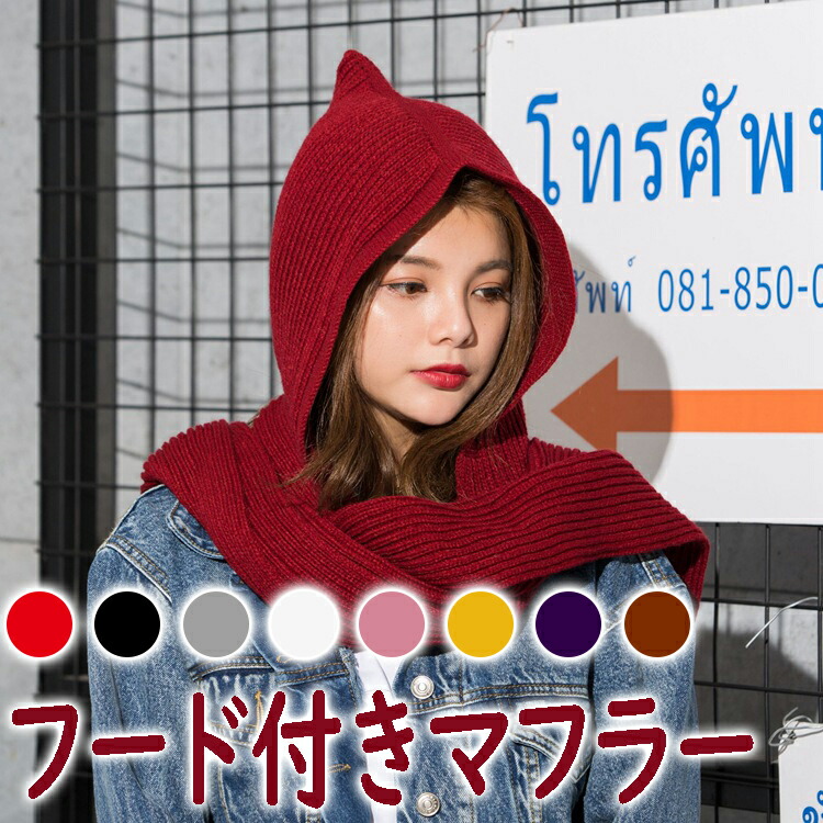 フード付きマフラー レディース メンズ バッグ 小物 ブランド雑貨 人気 レッド ブラック グレー ホワイト ピンク イエロー ネイビー ダークレッド