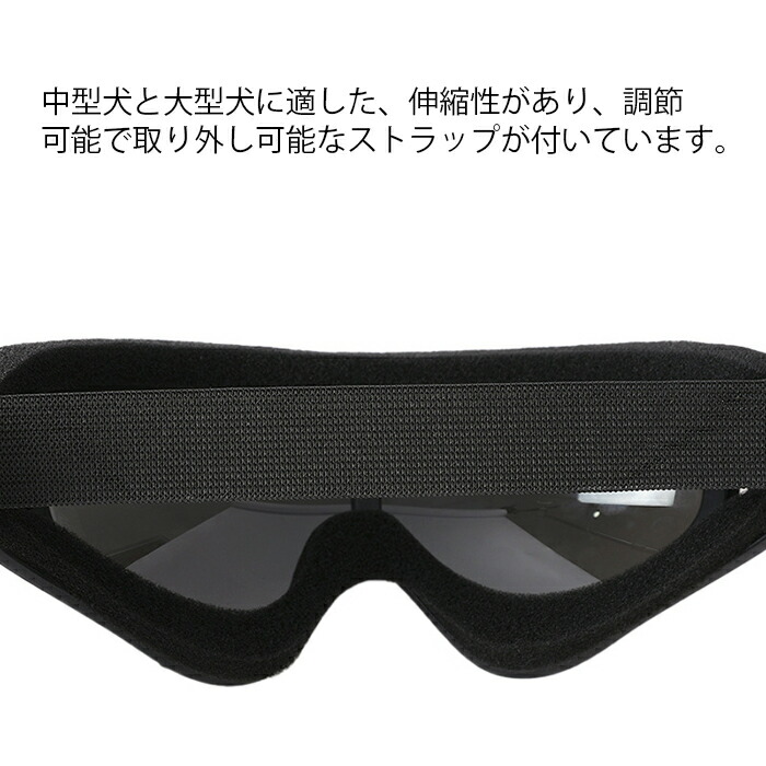 このゴーグルには調節可能で取り外し可能なストラップが付いており、中型犬と大型犬に適しています。また、鼻部分の快適さと安全性を向上させるために延長されたノーズブリッジのデザインも採用されています。
