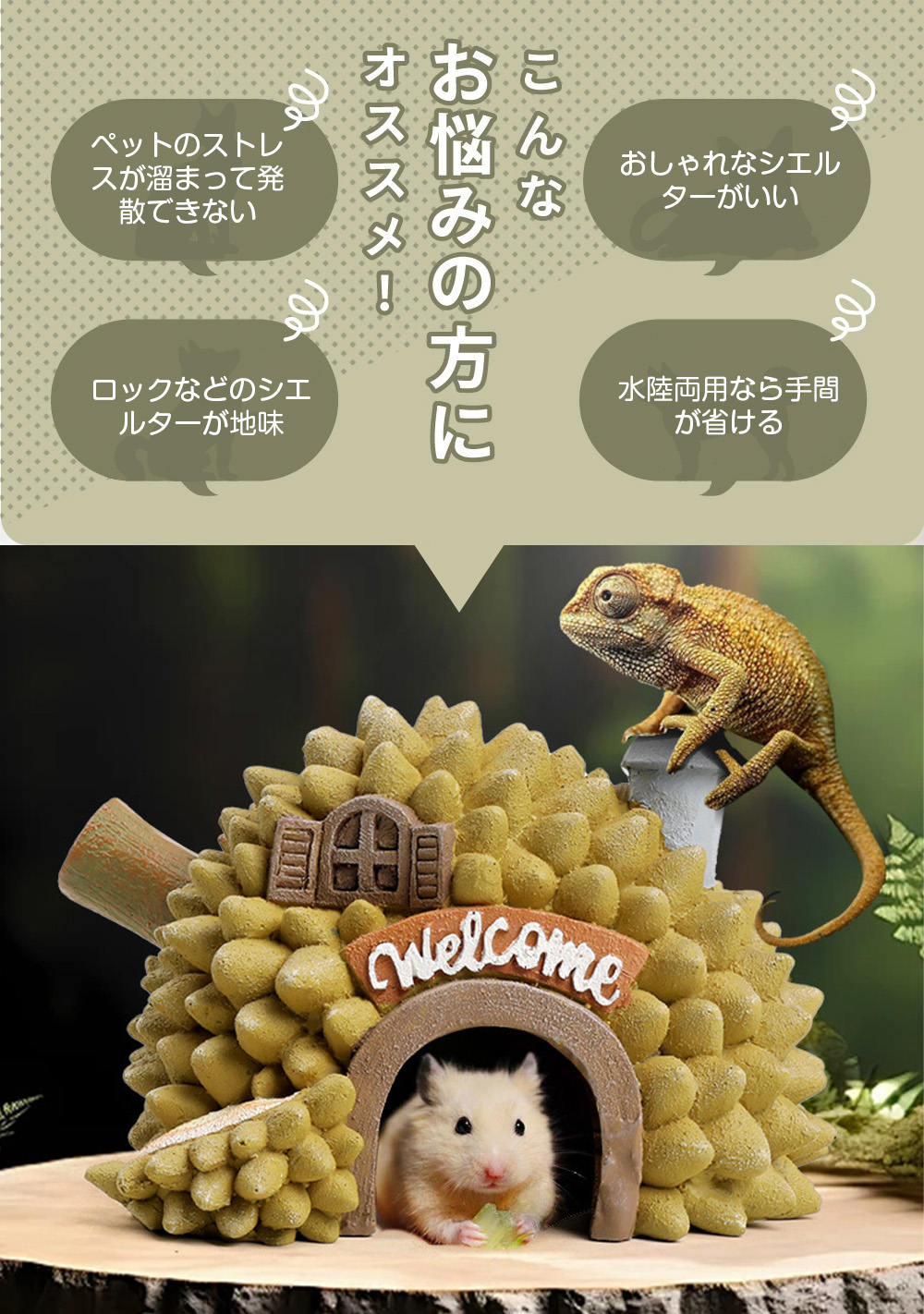 爬虫類 シェルター フルーツシェルター 隠れ家 バスキングスポット 石 爬虫類隠れ家 棲家 トカゲ 亀 両生類 おうちシェルター 魚 カメ 小動物 樹脂 熱帯魚 ハムスター 虫 守宮 景 昆虫
