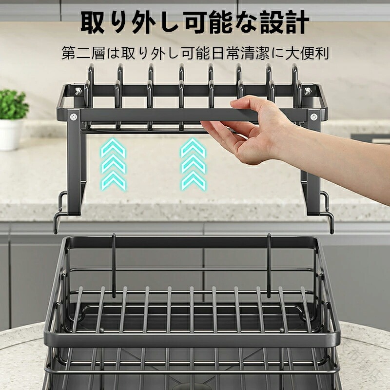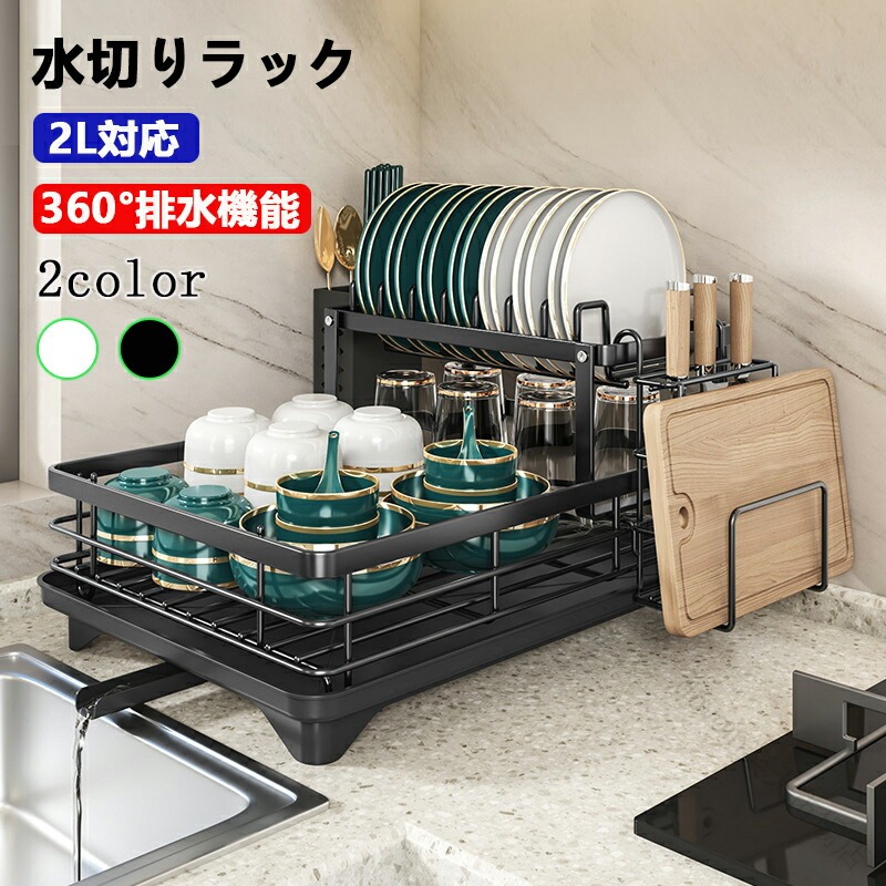 水切りラック キッチン用 自動排水 2 キッチン整理用品 水切りラック 新登場! ブラック ホワイト