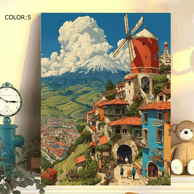 5色 塗り絵 数字 油絵 数字塗り絵 油絵キット アクリル絵画 お絵描き DIY 絵画 手塗り 数字油絵セット ナンバー油絵キット 大人の塗り絵 インテリア インナーフレーム付 30x40 初心者向け