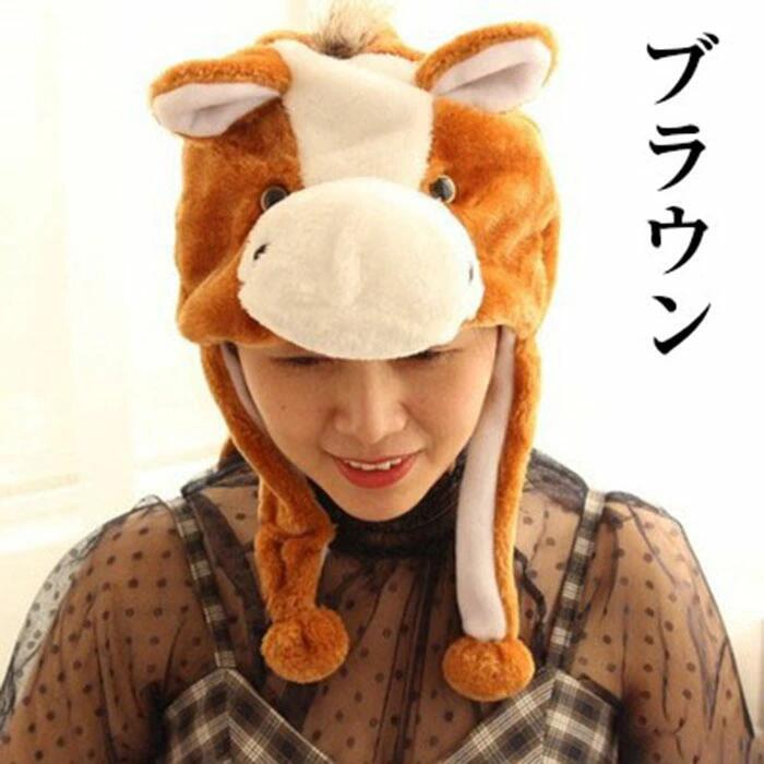 うま 被り物 干支 アニマル帽子 ハロ コスプレ 変装 仮装 仮面 マスク 人気 ブラウン ブラック