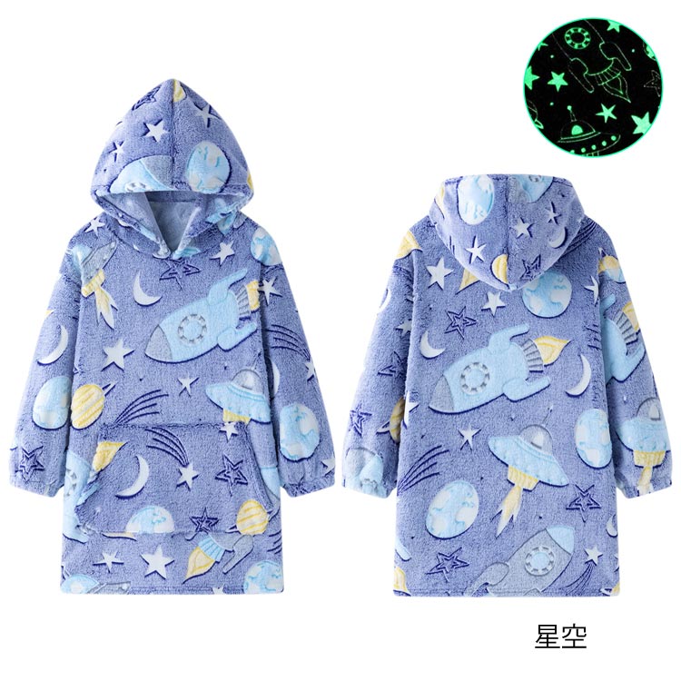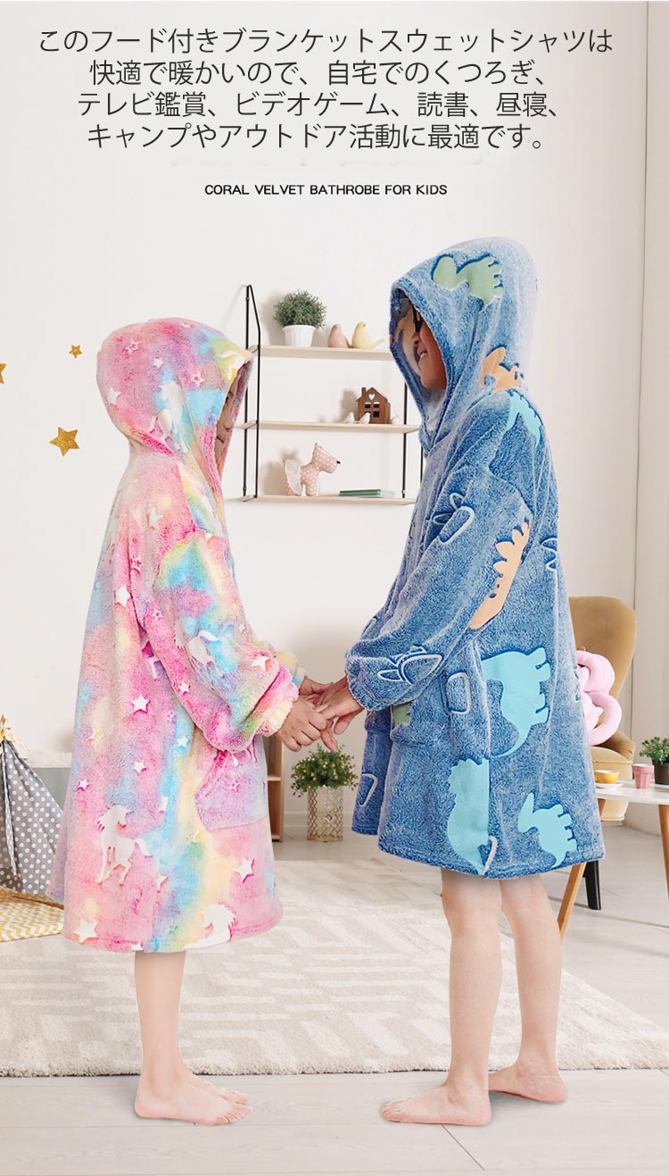 着る毛布 フード付 子供 パジャマ ル インテリア 寝具 収納 通販 ピンク パープル 恐竜柄 星空 S M