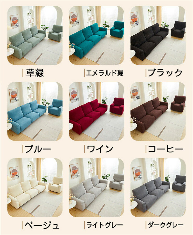 ソファーカバー 1人掛け 2人掛け 3 草緑 エメラルド緑 ブラック ブルー ワイン コーヒー ベージュ ライトグレー ダークグレー 1人掛け 2人掛け 3人掛け