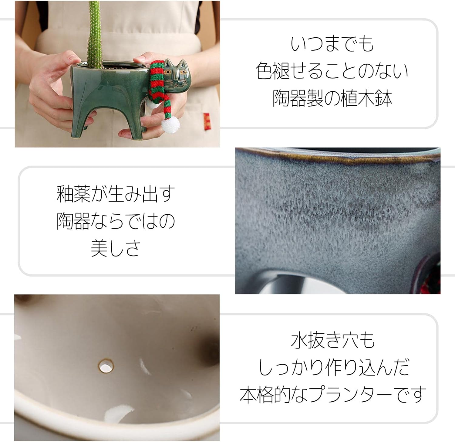 植木鉢 多肉鉢 陶器鉢 多肉植物 観葉 灰・紺 白・緑 青灰・黒